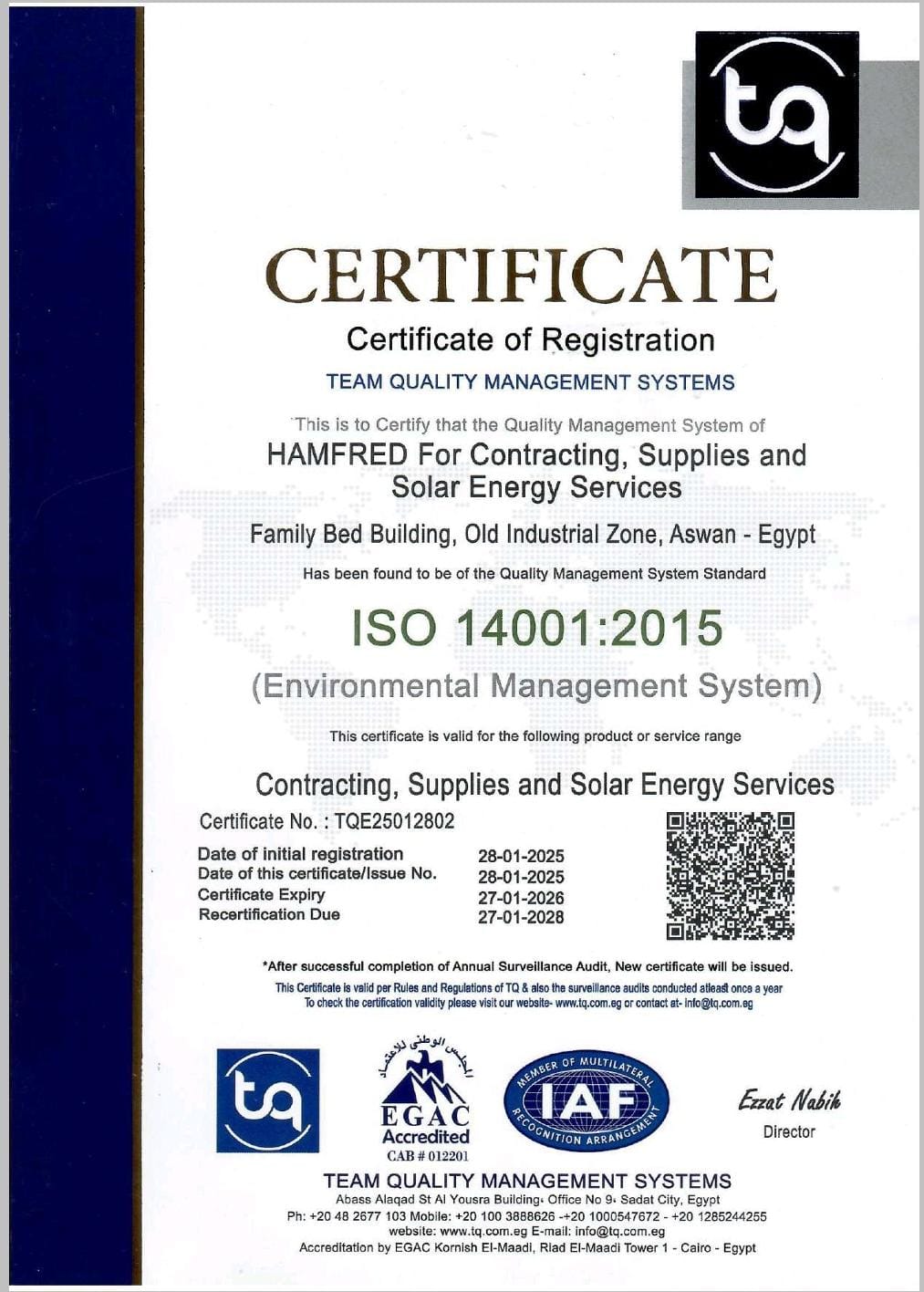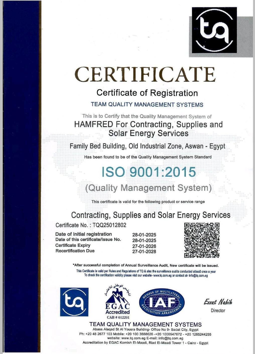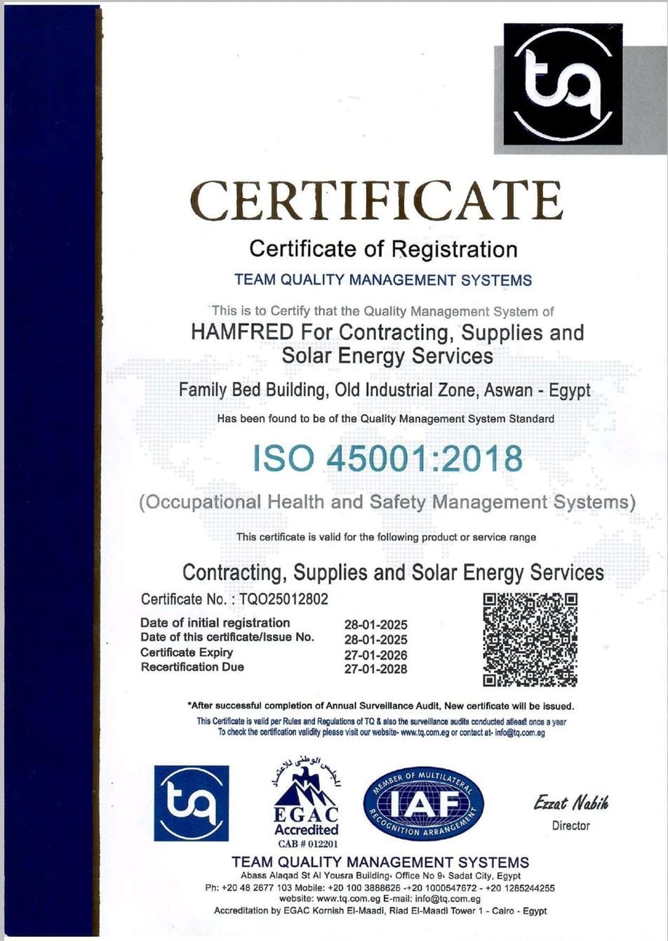 HAMFRED for general contracting is an international company engaged in the fields of Renewable Energy and Electrical Contracting with more than 7 years of experience in the market.